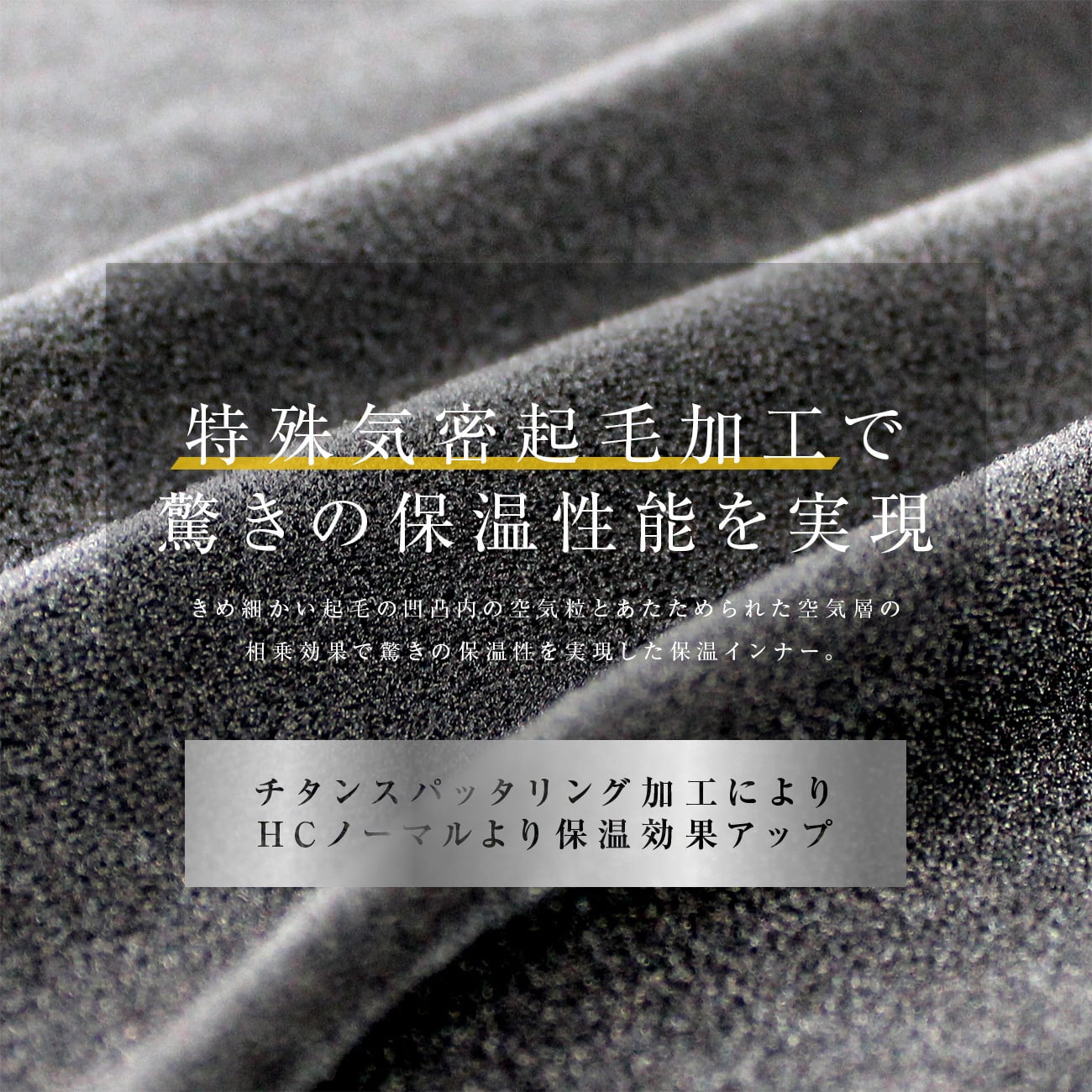 特殊機密起毛加工により、きめ細かい起毛の凹凸内の空気粒とあたためられた空気層の相乗効果で驚きの保温性を実現した保温インナー。(特殊チタンコーティングによりノーマルより効果プラス)