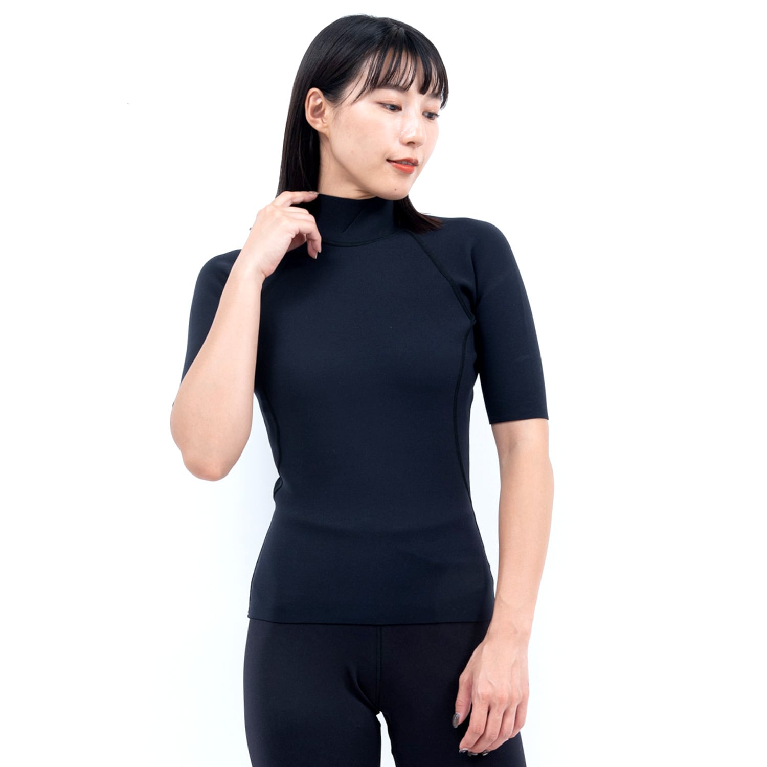 タックレス加工によりストレスの少ないスムーズな脱着を可能にして、折り返し縫いなどを無くしたインナーに特化した仕様で仕上げ、ウエットスーツの下に着用してもストレス無く優れた保温蓄熱性を実現しました。