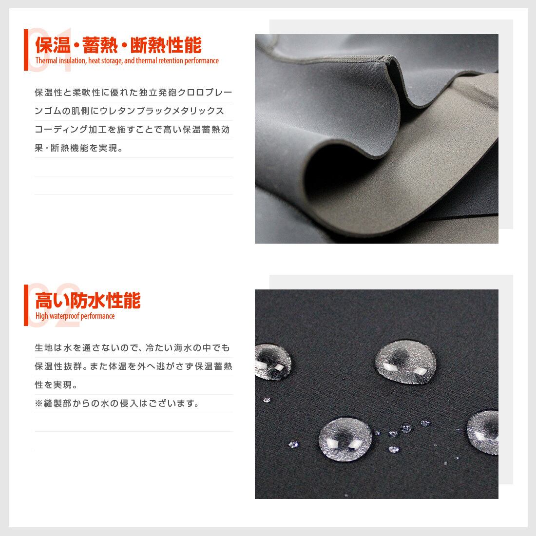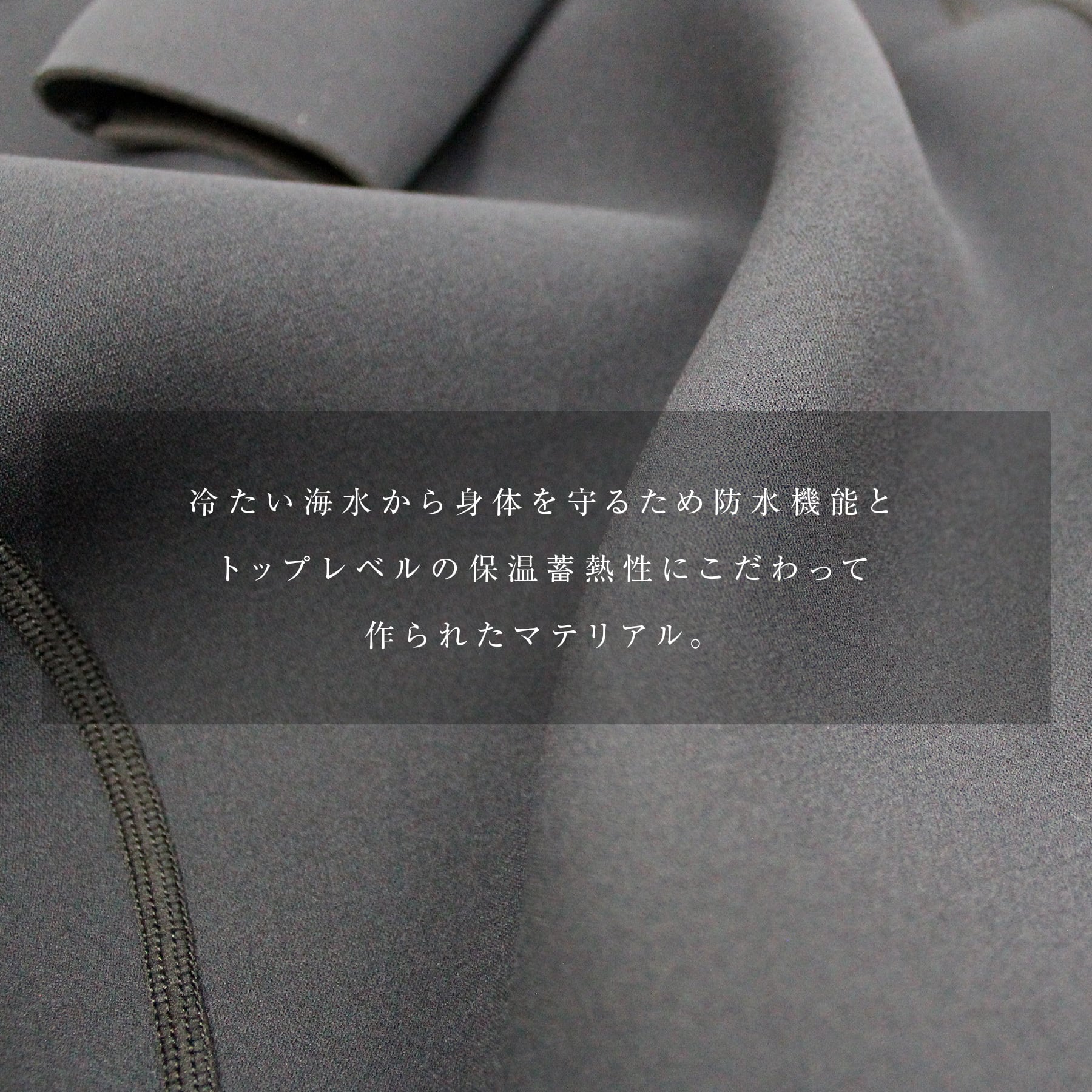 生地は水を通さないので、冷たい海水の中でも保温性抜群。また体温を外へ逃がさず保温蓄熱性を実現。