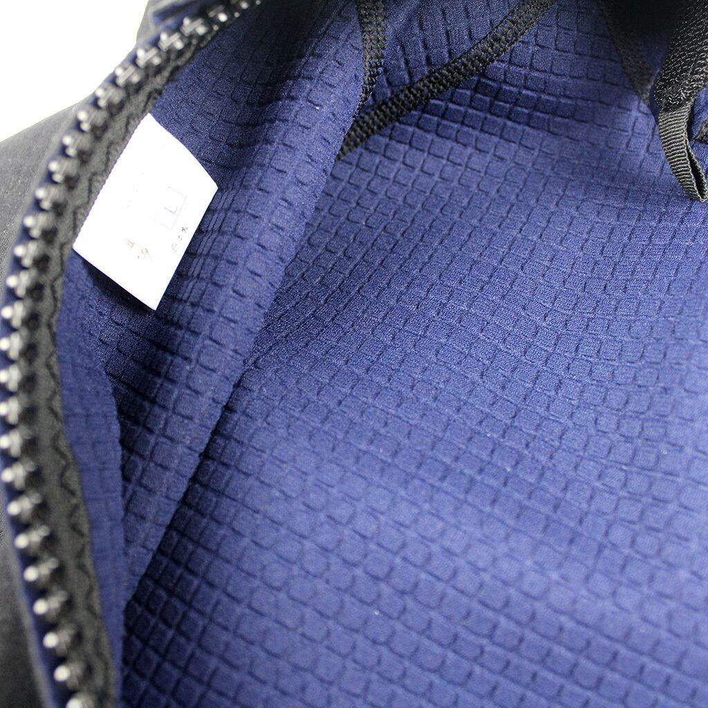さらに、この凹凸が生み出す「ウォームライン」の溝に微細な空気層(デッドエア)が保持されることで、従来のフラットな素材を上回る優れた保温性を発揮。