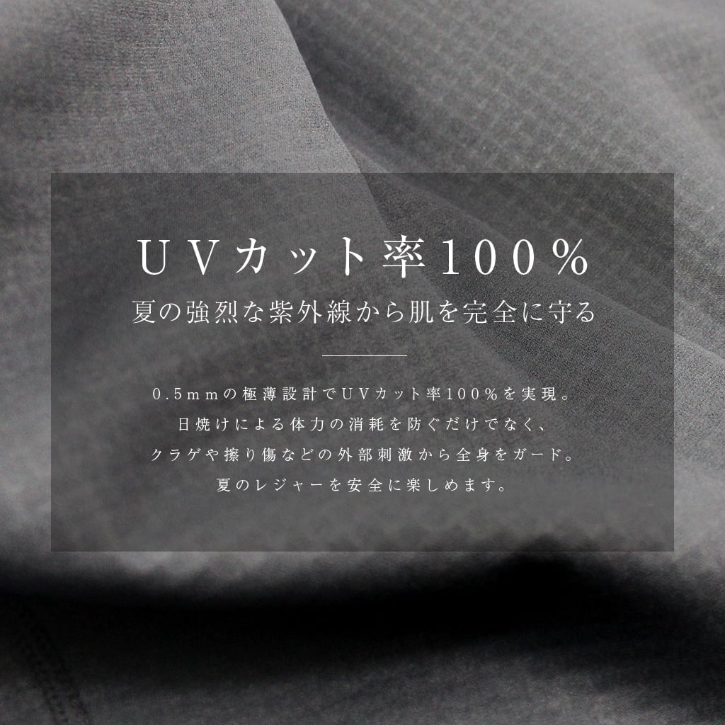 また、薄型ながらも高い保護性能を誇り、強力なUVカット機能で過酷な紫外線から肌を守るだけでなく、クラゲなどの外部刺激に対するガードとしても夏場のアクティビティで真価を発揮します。