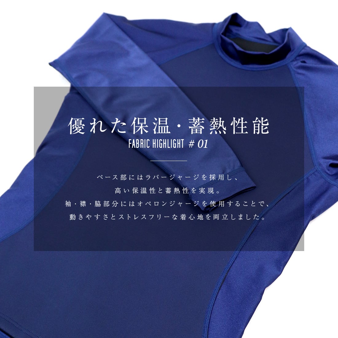 ボディ部分には保温・蓄熱性に優れたラバージャージを採用。