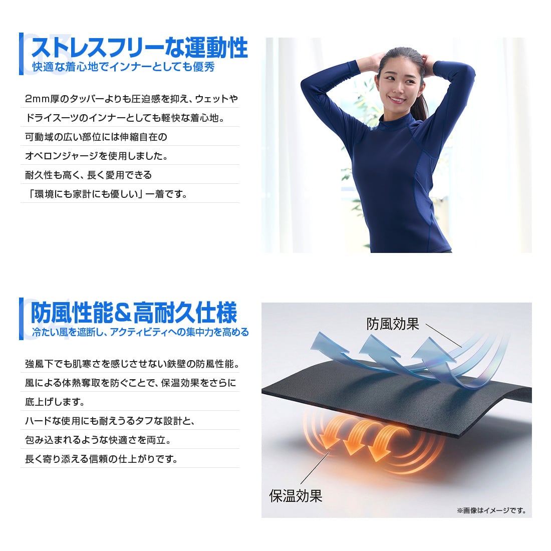 ~抜群の保温性と快適な動きやすさを両立したクロロプレーンラバー製ラッシュガード~