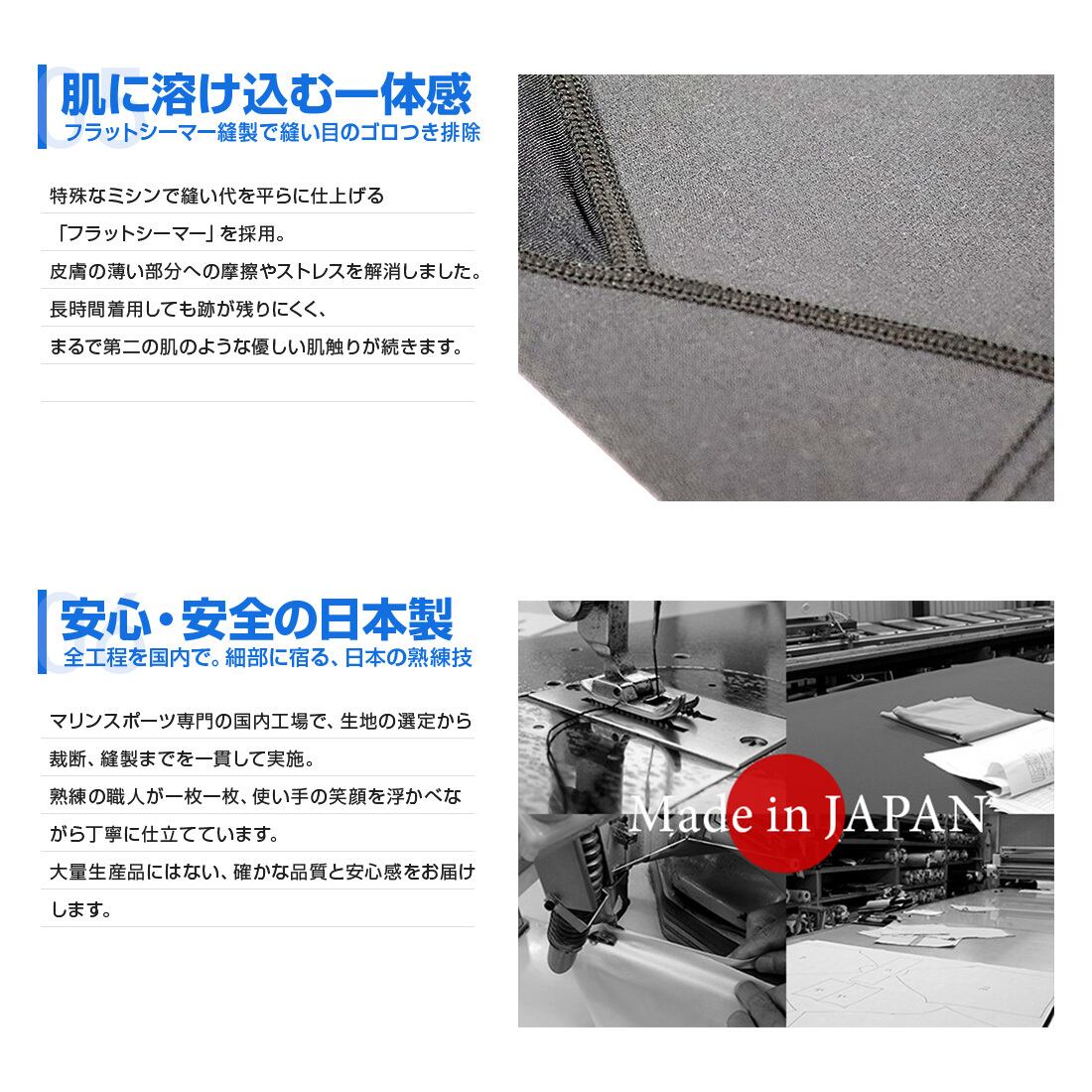そんなマリンスポーツ愛好家の声から生まれた、「保温性」と「機動力」を兼ね備えた日本製ラッシュガードです。