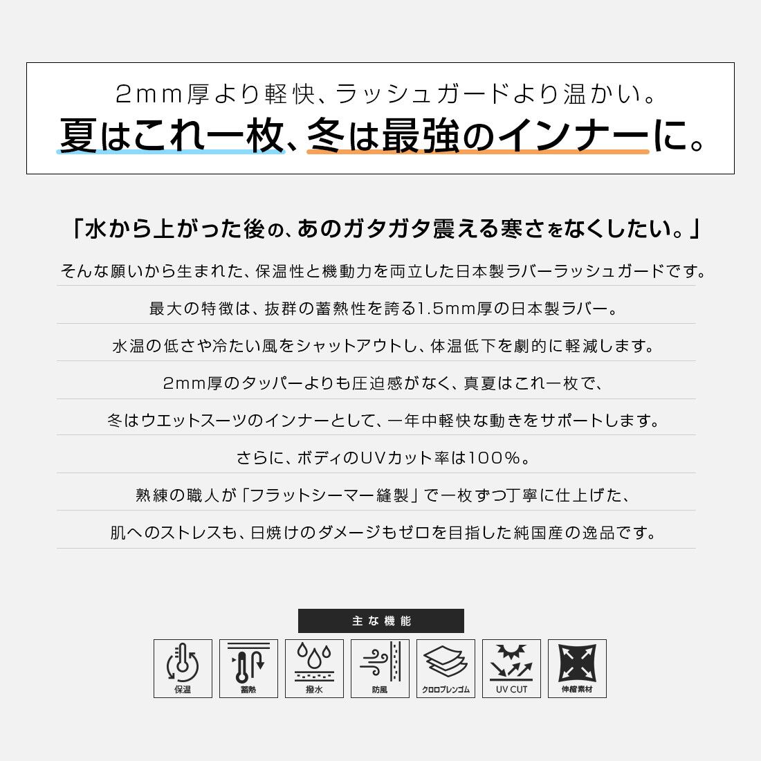 ~抜群の保温性と快適な動きやすさを両立したクロロプレーンラバー製ラッシュガード~